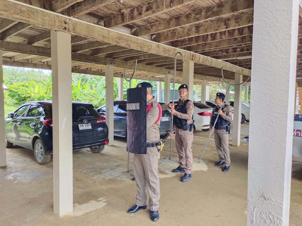 ร่วมซักซ้อมแผน และให้ความรู้ในการเผชิญเหตุ กรณีเกิดเหตุกราดยิง (ACTIVE SHOOTHER) ด้วยวิธีการเอาตัวรอดจากคนร้าย หนี – ซ่อน – สู้ ณ โรงเรียนบ้านปากยาง ต.น้ำแคม ฯ
