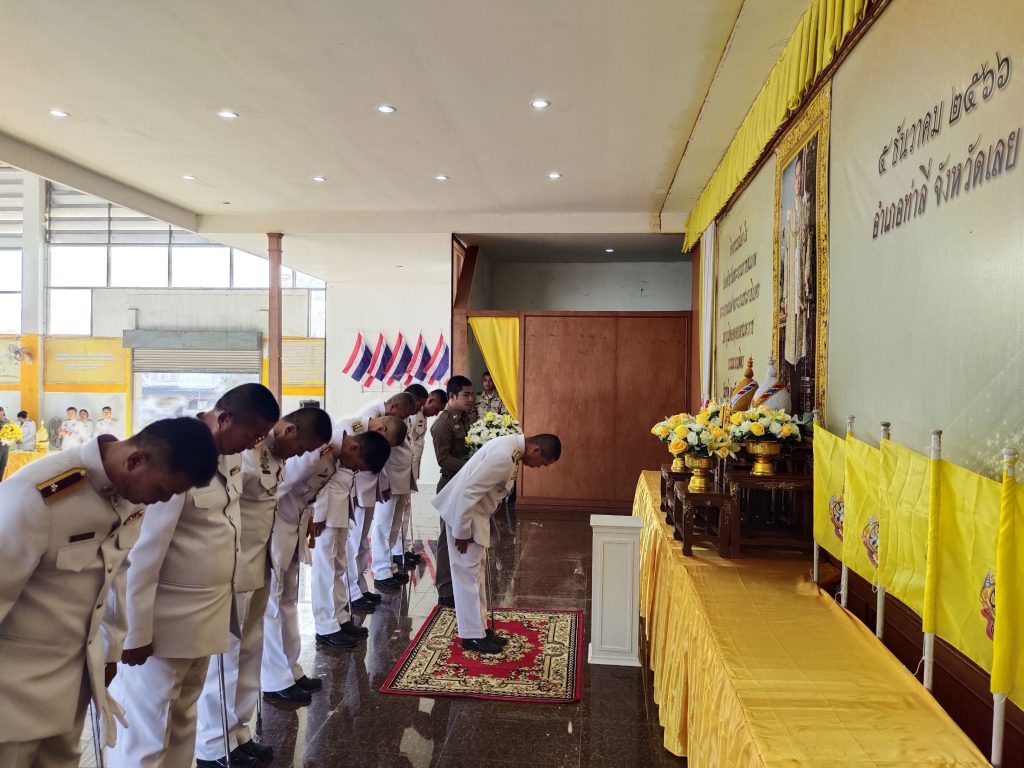 พ.ต.อ.สัมฤทธิ์ สิมสวัสดิ์ ผกก.สภ.ท่าลี่ พร้อมด้วย ข้าราชการตำรวจ สภ.ท่าลี่ ร่วมพิธีวางพานพุ่มดอกไม้สด เนื่องในวันคล้ายวันบรมราชสมภพ พระบาทสมเด็จพระบรมชนกาธิเบศร มหาภูมิพลอดุลยเดช มหาราช บรมนาถบพิตร วันชาติและวันพ่อแห่งชาติ เพื่อถวายเป็นพระราชกุศลฯ ณ หอประชุม อำเภอท่าลี่