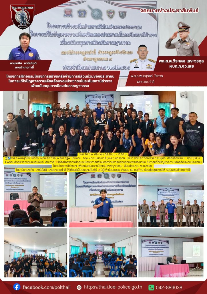 🌟ได้จัดโครงการฝึกอบรมโครงการสร้างเครือข่ายการมีส่วนร่วมของประชาชน ในการแก้ไขปัญหาความเดือดร้อนของประชาชนในระดับสถานีตำรวจเพื่อสนับสนุนการป้องกันอาชญากรรม ปีงบประมาณ 2569