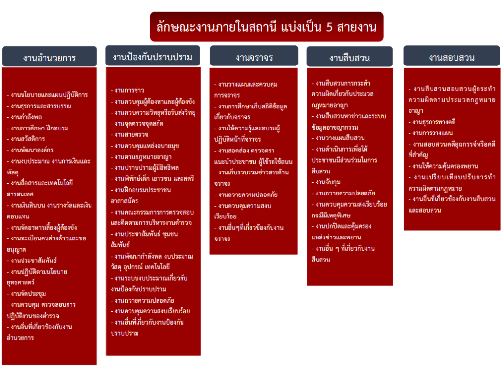 - ปฏิบัติการอื่นใดตามที่กฎหมายกำหนดให้เป็นหน้าที่ของตำรวจหรือสำนักงานตำรวจแห่งชาติ