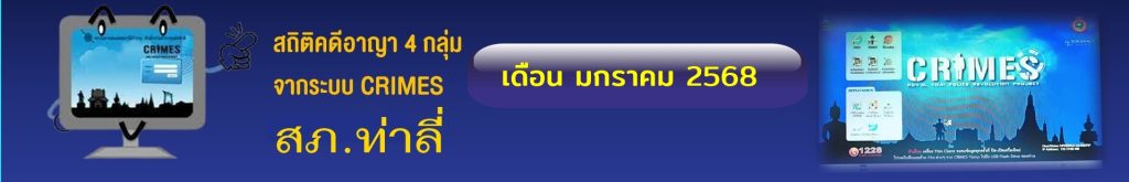 - ข้อมูลผลการดำเนินงานในเชิงสถิติด้านคดีอาญา 4 กลุ่มตามระบบ CRIMES เดือน มี.ค.68 ในรูปแบบไฟล์ PDF คลิ๊กดูที่นี่