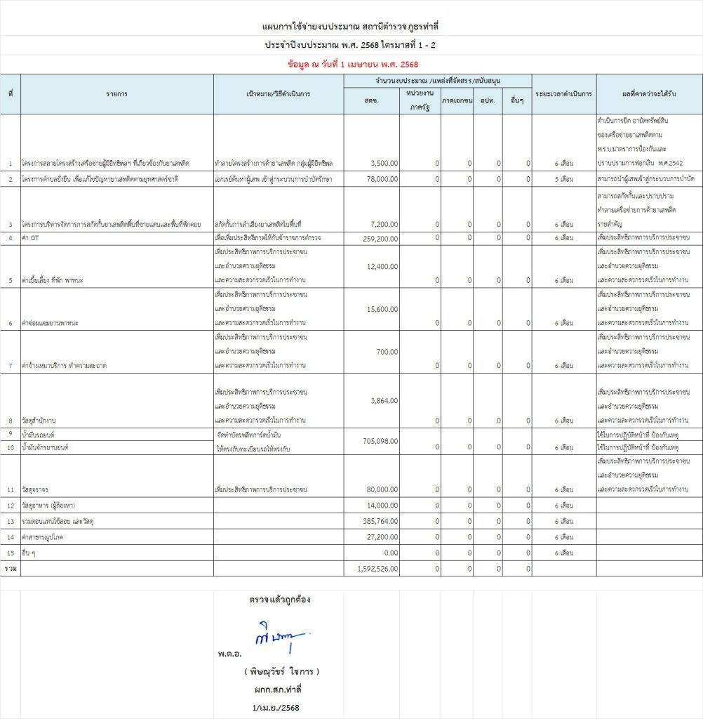- แผนการใช้จ่ายงบประมาณประจำปี ไตรมาส 1-2 งบประมาณ 2568 ในรูปแบบ ไฟล์ PDF