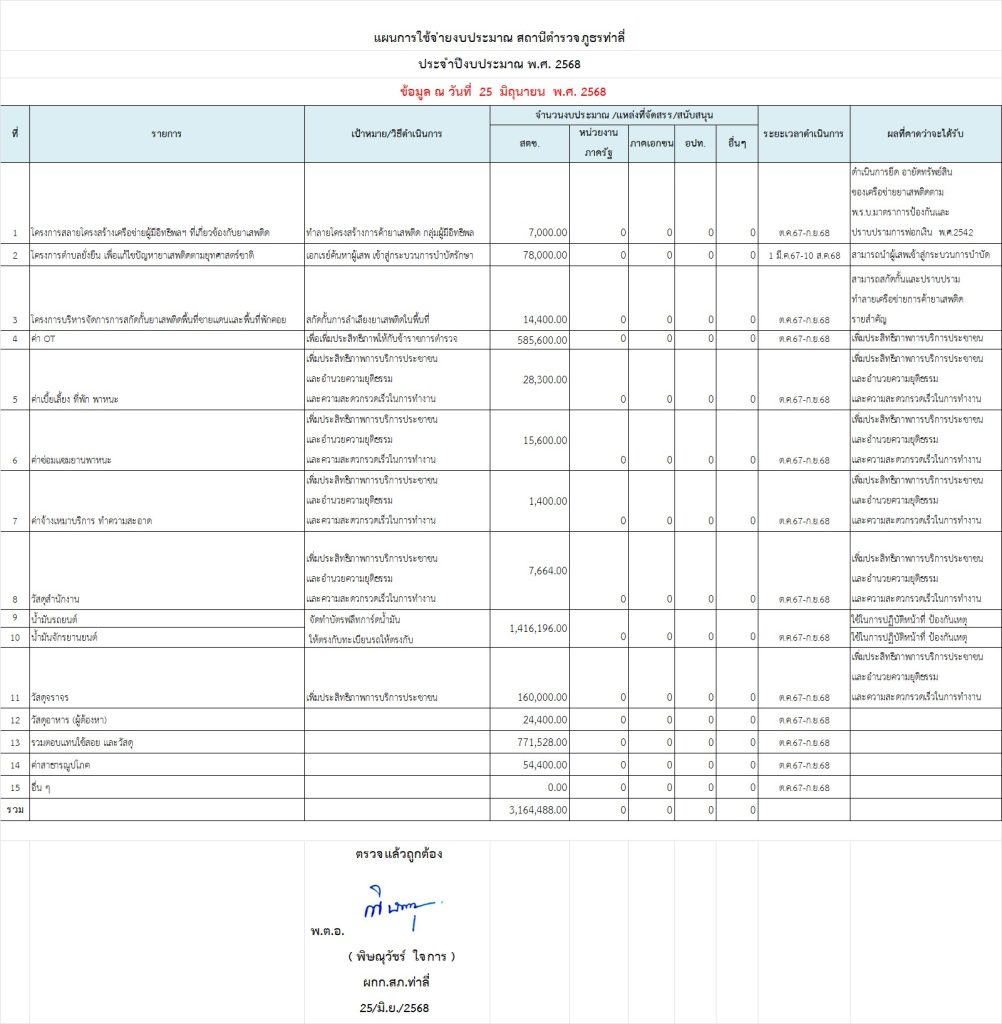 1.แผนการใช้จ่ายงบประมาณ สภ.ท่าลี่ ประจำปีงบประมาณ พ.ศ.2568