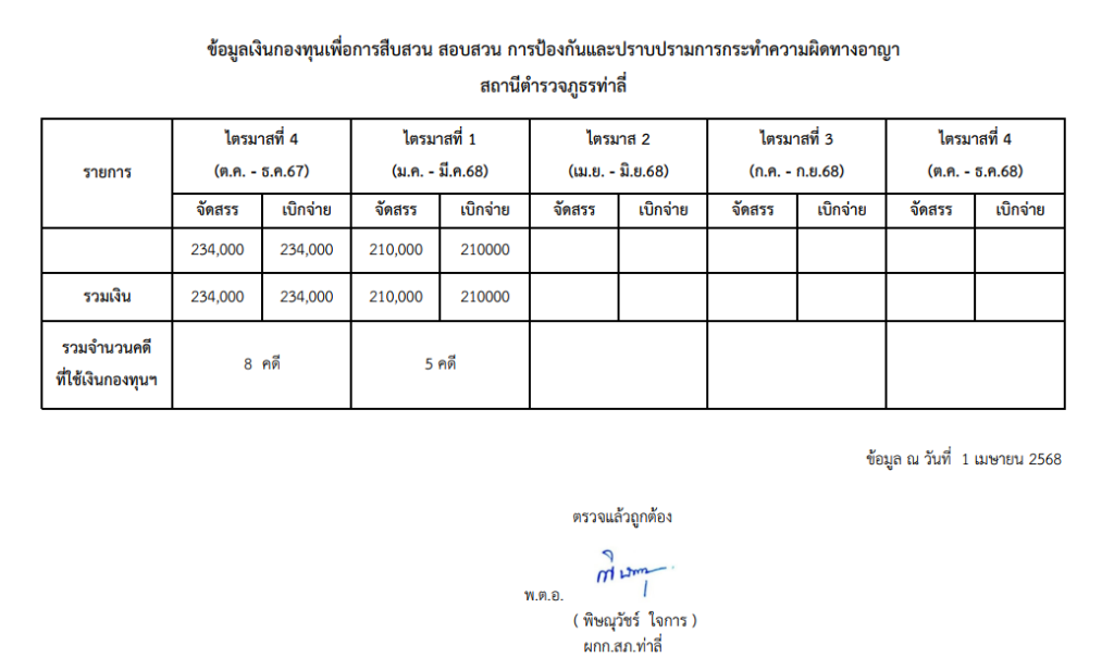 • ข้อมูลกองทุนเพื่อการสืบสวน สอบสวนการป้องกันและปราบปรามการกระทำผิดทางอาญา ของ สภ.ท่าลี่ ในรูปแบบ PDF คลิ๊กที่นี่