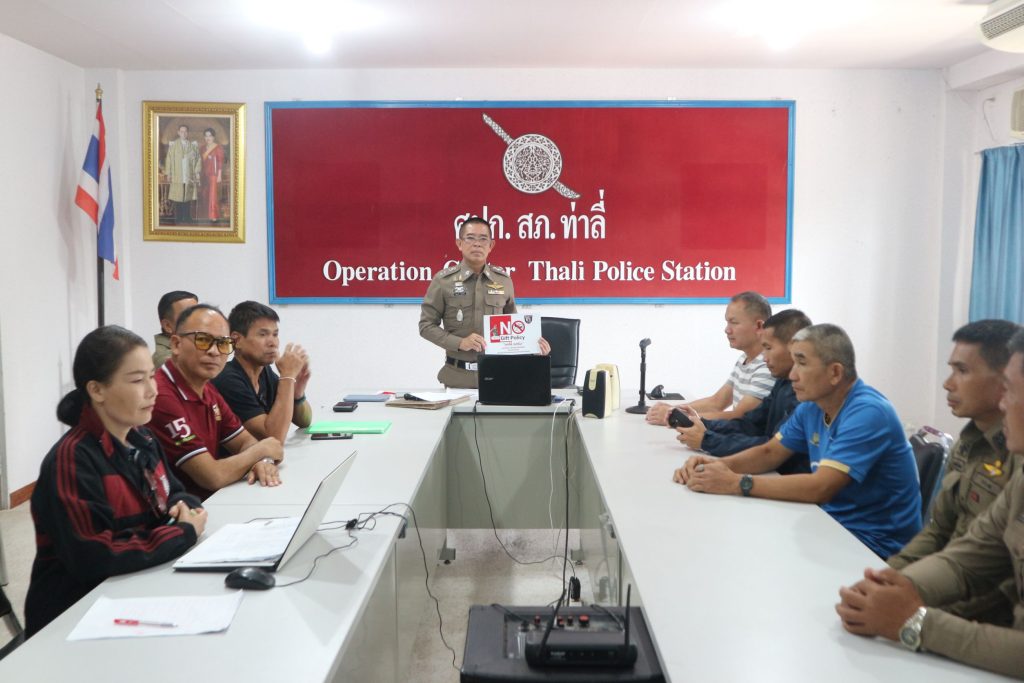 พร้อมทั้งชี้แจงเกี่ยวกับการประกาศนโยบายดังกล่าวต่อข้าราชการตำรวจ เจ้าหน้าที่งานป้องกันปราบปราม งานสืบสวน และงานจราจร สภ.ท่าลี่